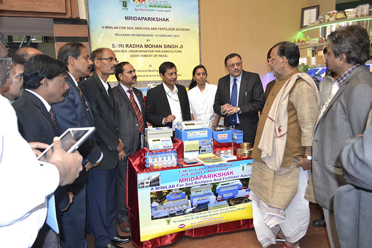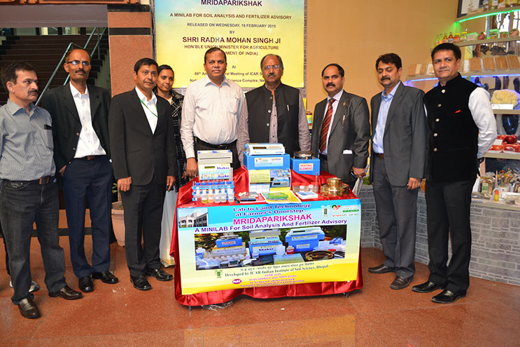 ICAR-Indian Institute of Soil Science, Bhopal has developed a mini lab named Mridaparikshak' which can assess the soil health and can be used in the preparation of soil health cards. It is a digital mobile quantitative mini lab to provide soil testing service at farmers' doorsteps. It comes with balance, shaker, hot plate, and Smart Soil Pro, an instrument for determining the soil parameters and displaying of fertilizer nutrient recommendations. It determines all the important soil parameters i.e. soil pH, EC, organic carbon, available nitrogen, phosphorus, potassium, sulphur and micronutrients like zinc, boron and iron.